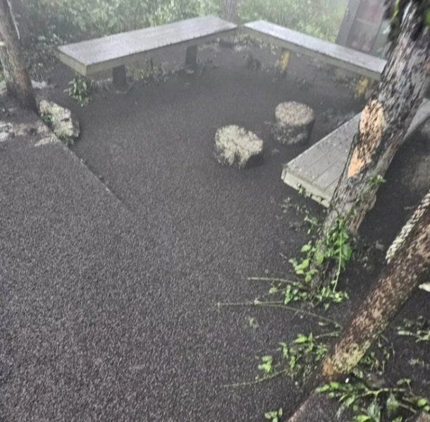 러브버그 사체로 까맣게 뒤덮여 마치 흙이라도 뿌려놓은 듯한 모습입니다.