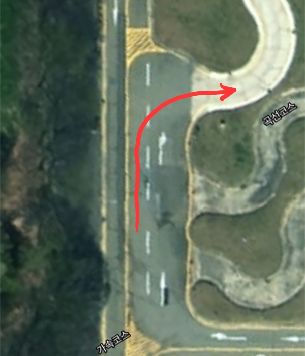 굴절코스보다 도로폭이 넓어서 굴절코스 통과하고 넘어온 사람이라면 어렵지 않게 통과할 수 있다.