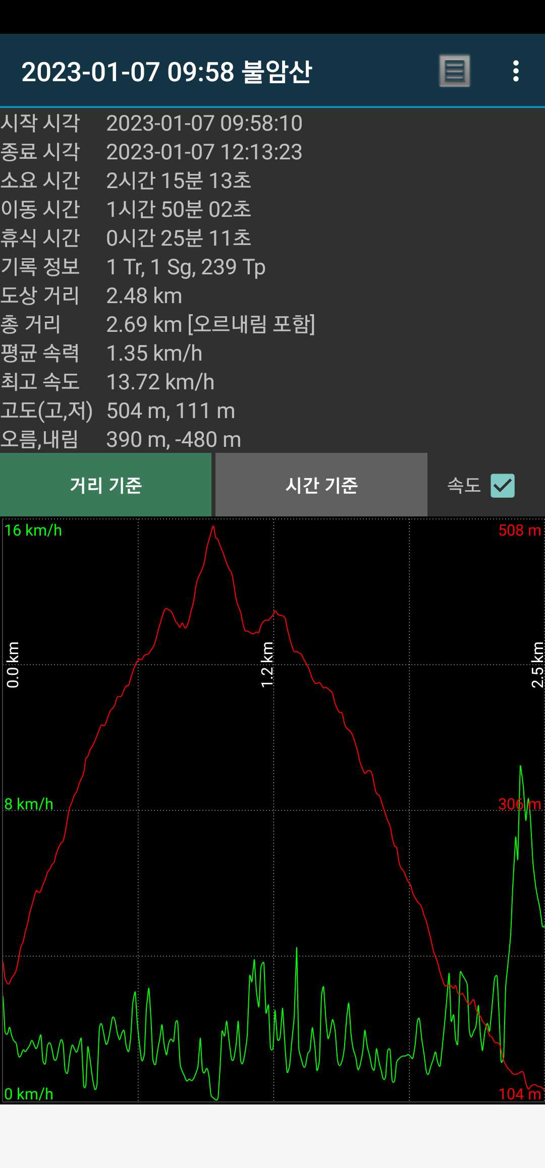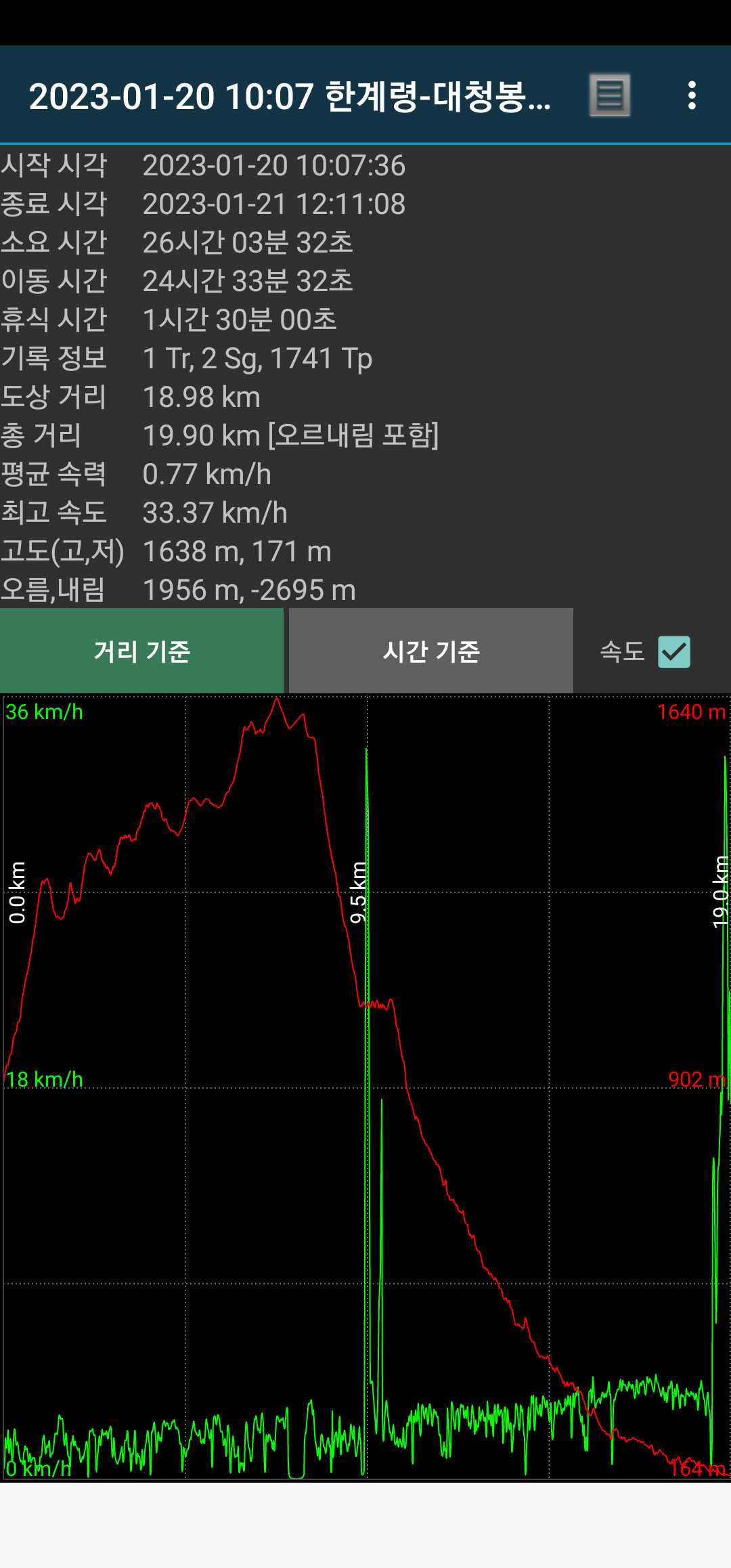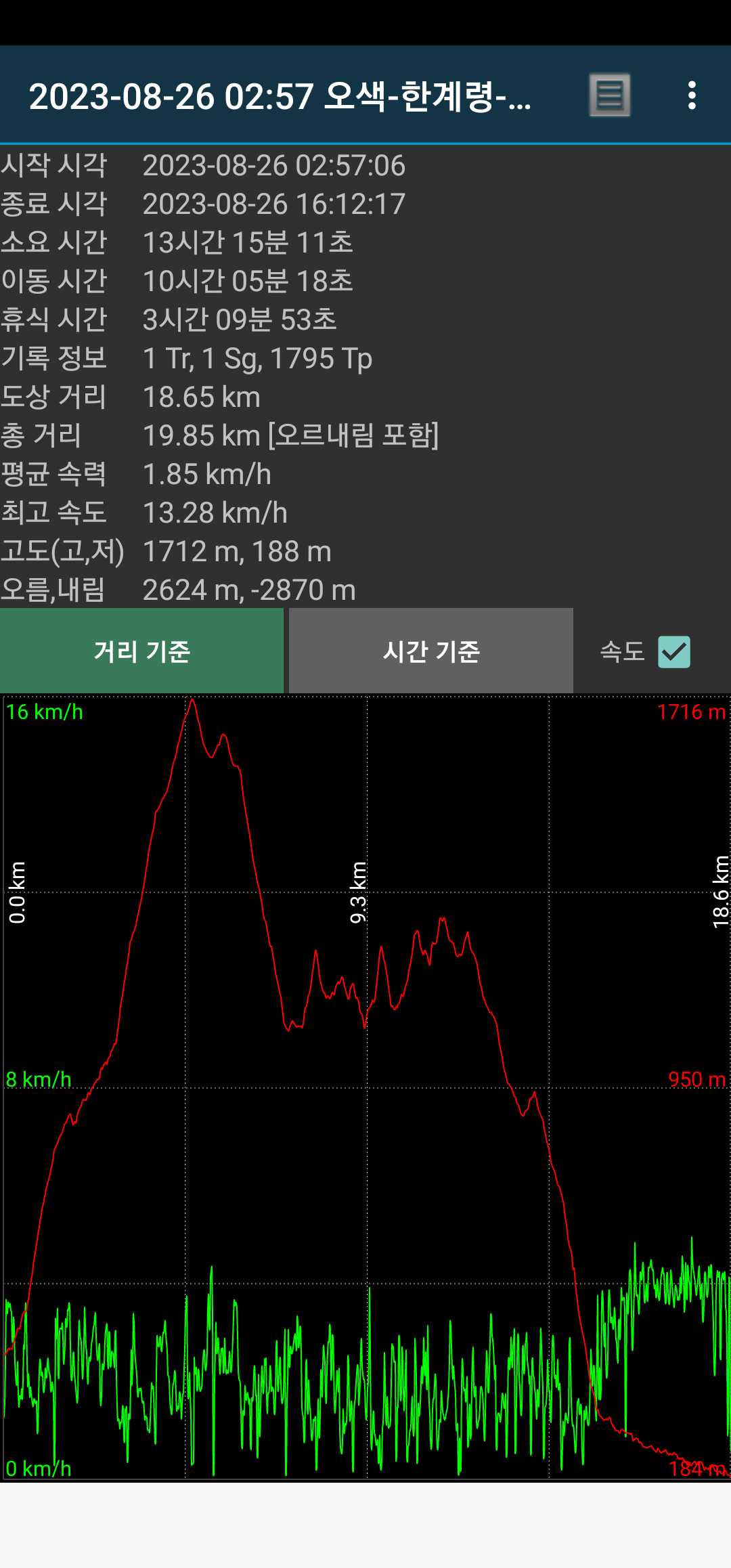 무슨 생각에선지 열심히 따라갔었음. 덕분에 13.6km.