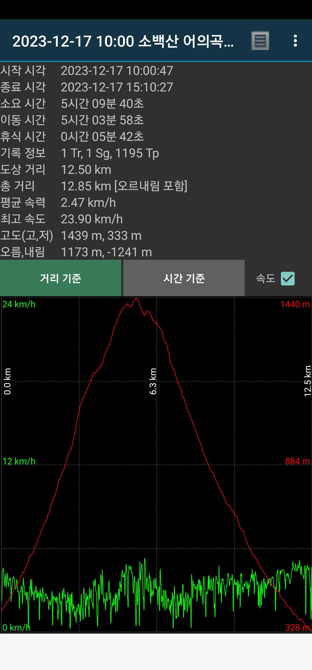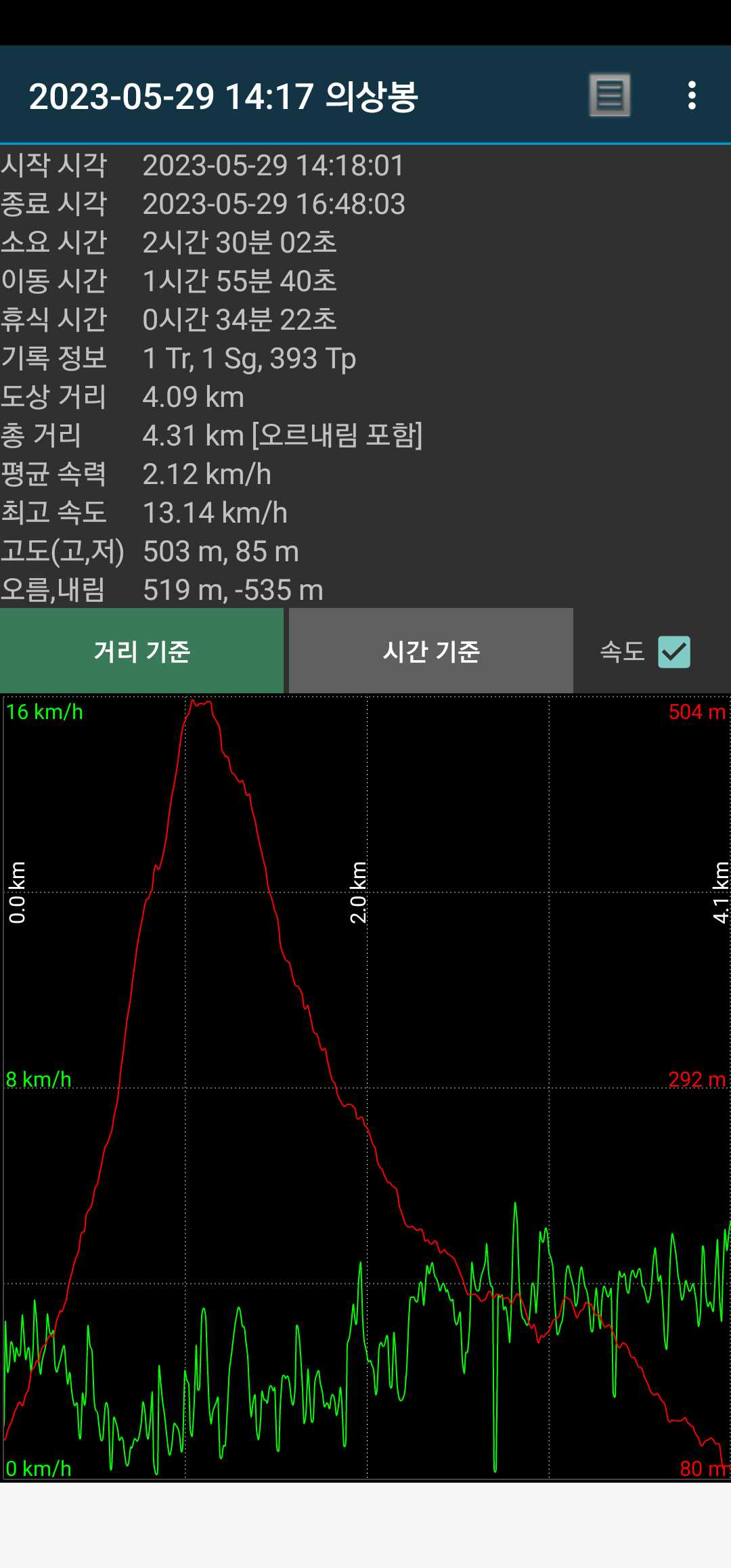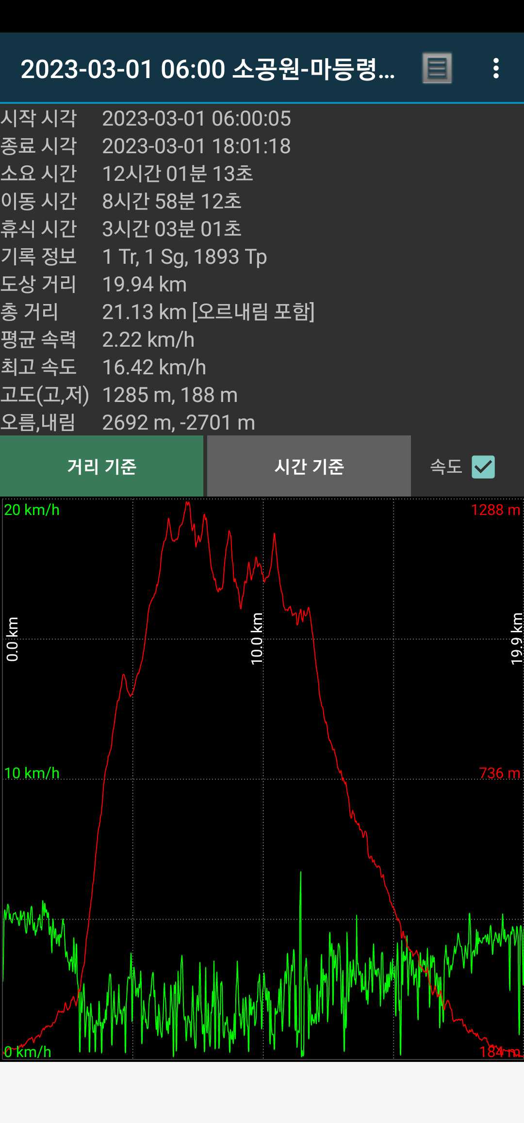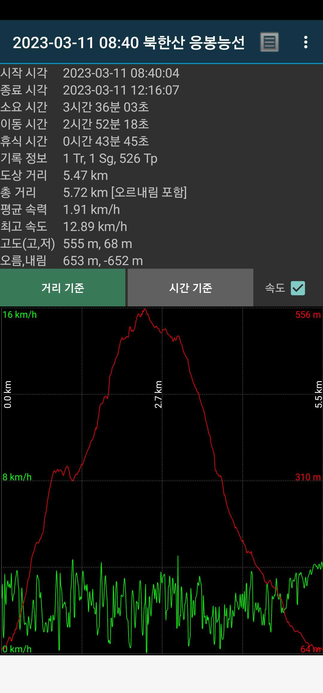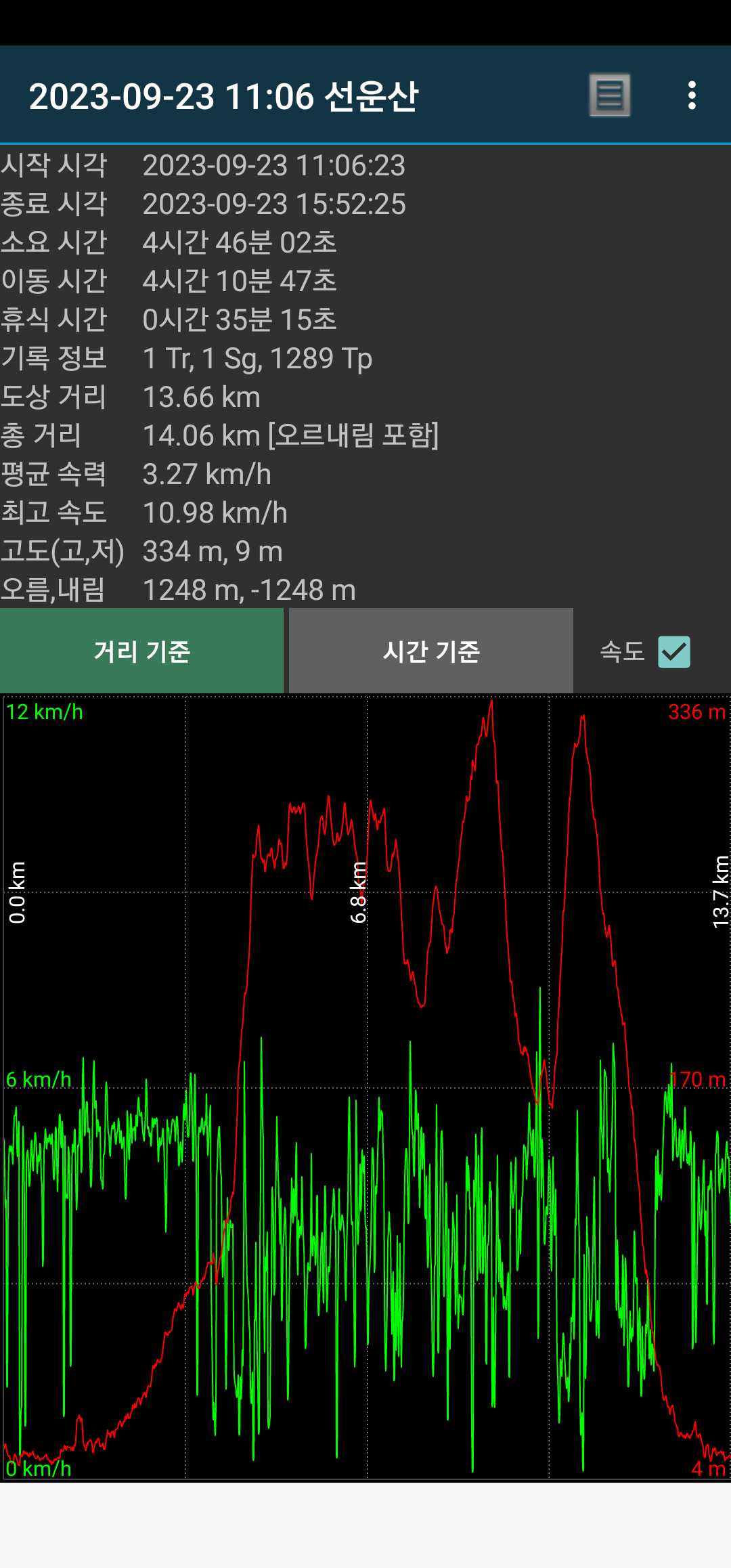 무슨 생각에선지 열심히 따라갔었음. 덕분에 13.6km.