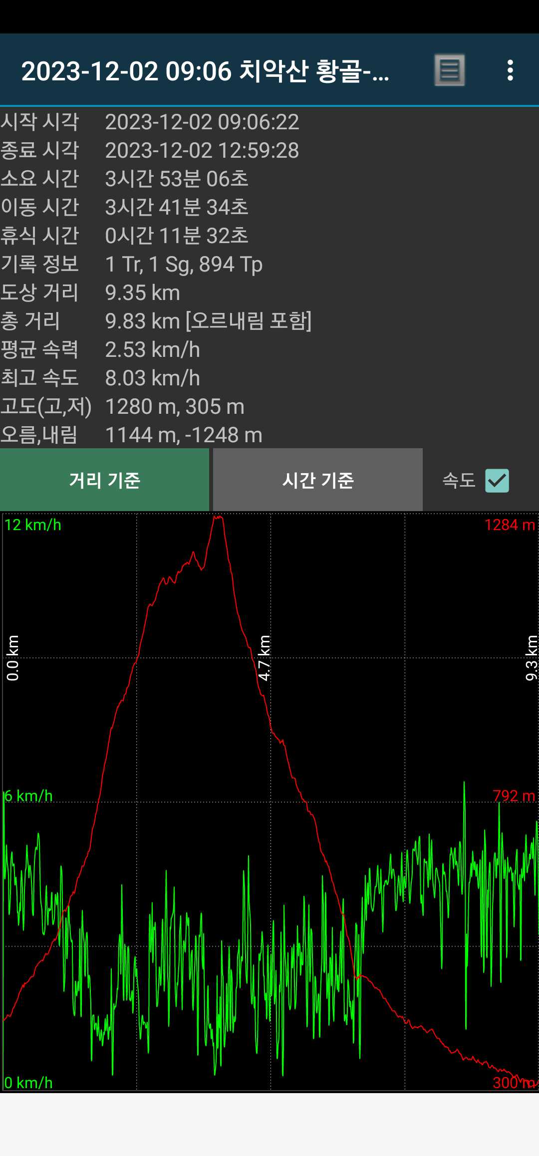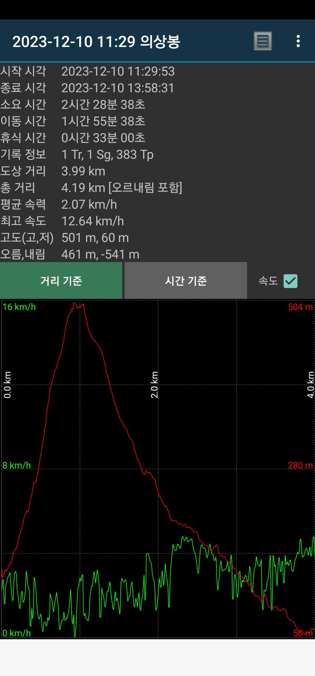 진고개 고도가 900m가 넘어서 4km 동안 대략 400m 올라가는 쉬운 코스다.